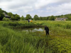 Mercrdi 7 Mai en début de matinée rendez vous pour Yannick, Dominique et William à la Fédération de pêche de Brissac : vidange du dernier petit bassin ( écloserie des brochetons) et récupération de 350 individus.